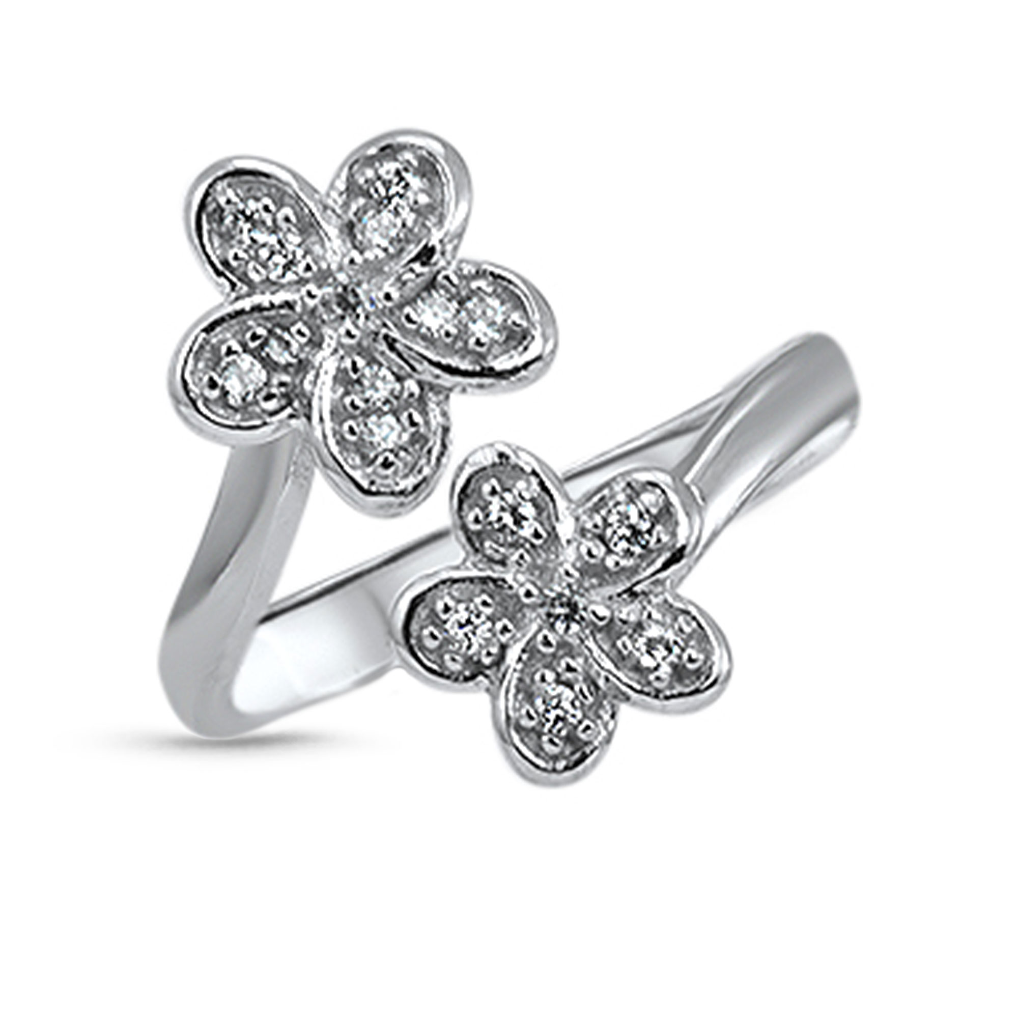 Fashion Flower. This 925 Sterling Silver toe ring with beautiful sparkling silver flowers. Size is adjustable.